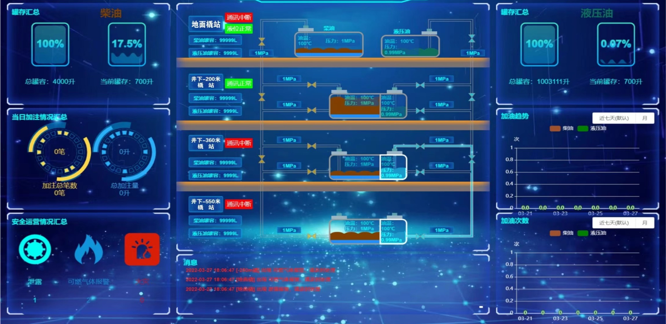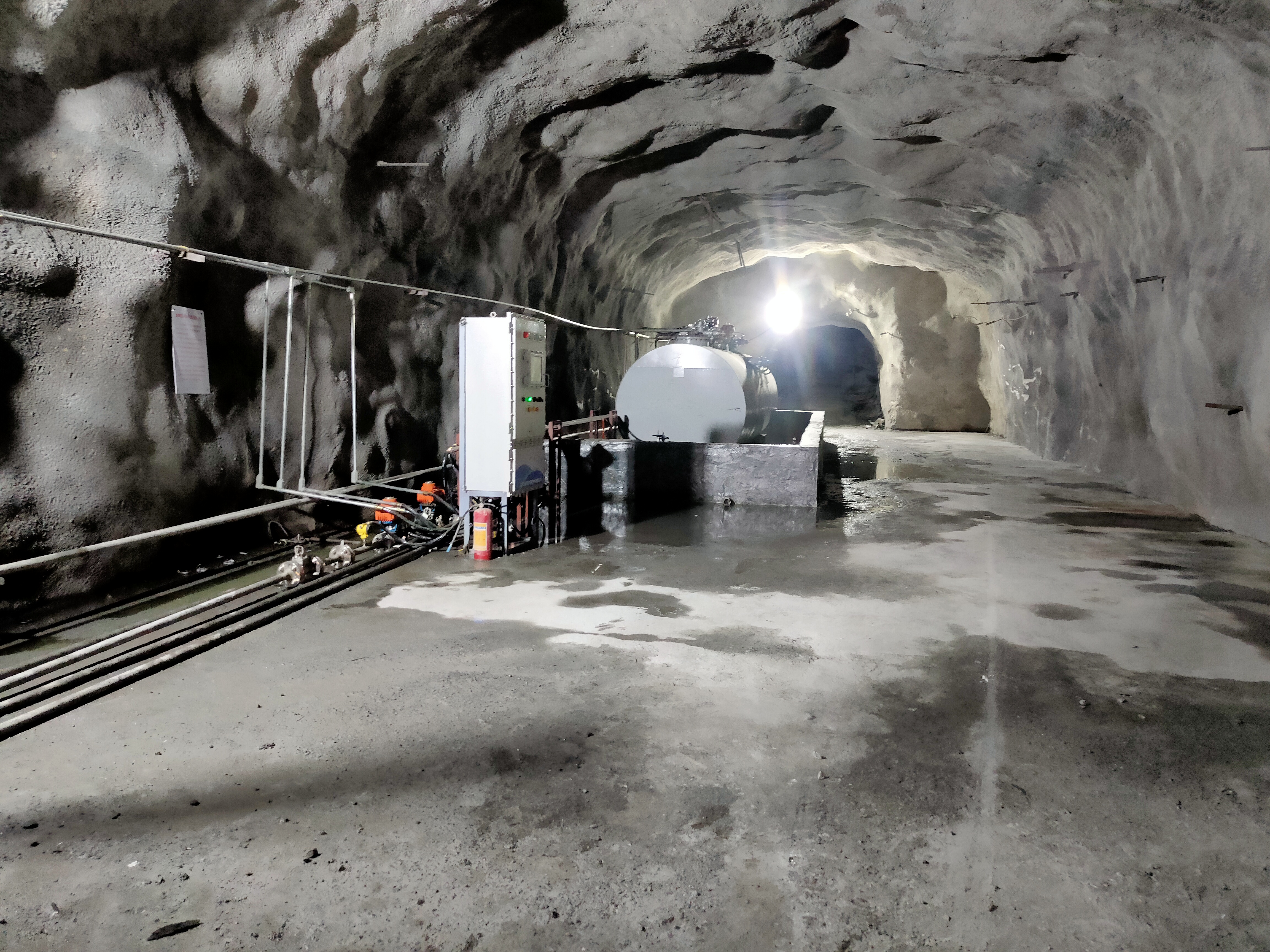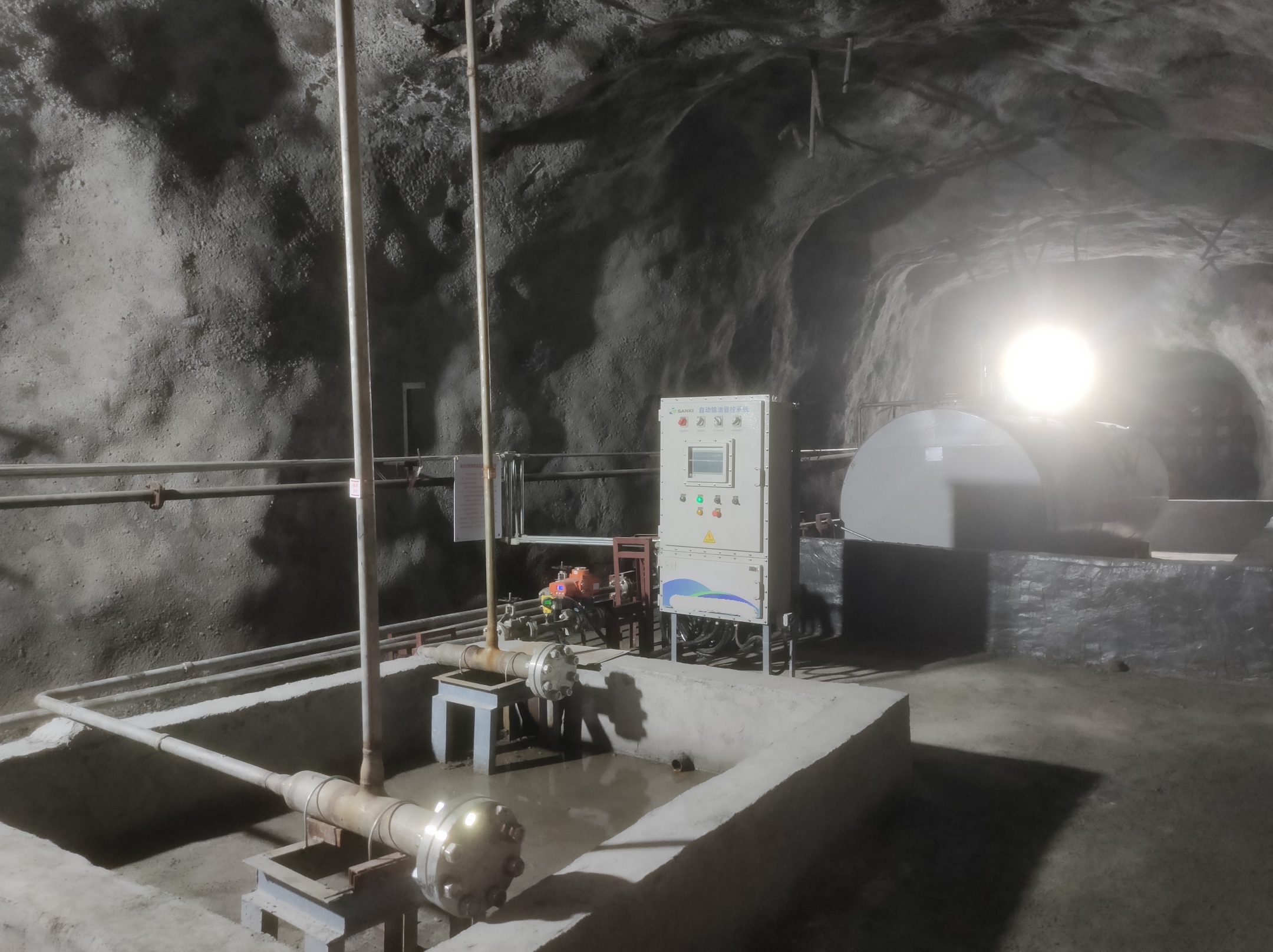 凡口鉛鋅礦井下680米智能供油系統(tǒng) 目前正有序施工中, 預(yù)計(jì)9月底完工并投入使用。該項(xiàng)目為全國首創(chuàng), 由韶關(guān)企業(yè)進(jìn)行技術(shù)攻堅(jiān) 并申請多項(xiàng)國家專利, 擬申報(bào)吉尼斯世界紀(jì)錄 “全球最深的智能供油系統(tǒng)”。 凡口鉛鋅礦井下智能供油系統(tǒng) 需在地面設(shè)置橇裝加油裝置, 并分別在地下 330米、480米和680米處 建設(shè)智能化供油系統(tǒng), 通過鉆孔鋪設(shè)輸油管線, 將油品從地面輸送到井下。 地下330米智能加油點(diǎn), 目前已進(jìn)入收尾階段, 現(xiàn)場有兩根 從地面裝置接下來的輸油管, 用于工程車加油, 另一邊也有兩根輸油管輸送到 地下480米和680米的智能加油點(diǎn)。 別看油管很細(xì),鉆孔不大, 但施工難度并不小, 全長3千多米的輸油管, 垂直打孔偏差不能超過1米。 作為亞洲最大的 單體鉛鋅銀礦生產(chǎn)基地, 凡口鉛鋅礦 有井下工程車輛和設(shè)備100多臺, 井下用油量大。 井下智能化供油系統(tǒng)啟用后, 不僅解決井下用油安全、環(huán)保風(fēng)險, 同時降低生產(chǎn)用油成本, 推進(jìn)凡口鉛鋅礦建設(shè)智能化礦山, 實(shí)現(xiàn)“無人開采”。 如果鉆孔偏差太大,就找不到鉆下來的孔,影響輸油管道的布設(shè),增大成本。3千多米有5千多個焊接點(diǎn),所有的焊接口都要達(dá)到高壓管道的焊接要求,這個項(xiàng)目是全國首創(chuàng),在全國所有礦山企業(yè)中,我們是首次使用通過輸油管道往井下輸油,并且實(shí)現(xiàn)智能控制的方案。 這個月底把地下330米加油點(diǎn)完工,開始加油,9月底把底下480米和680米開通使用。希望通過這個項(xiàng)目打造創(chuàng)新科技的韶關(guān)樣板,把先進(jìn)的經(jīng)驗(yàn)和技術(shù)推廣到全省、全國乃至全球。